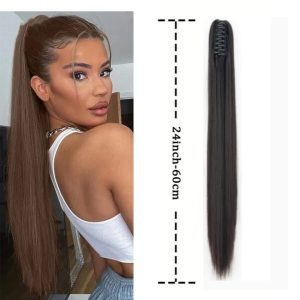 24 Inch Long Straight Claw Clip Ponytail Extension! 💖 এই হেয়ার এক্সটেনশনটি তৈরি করা হয়েছে high-quality synthetic fiber দিয়ে, যা দেখতে একদম natural silky hair এর মতো।